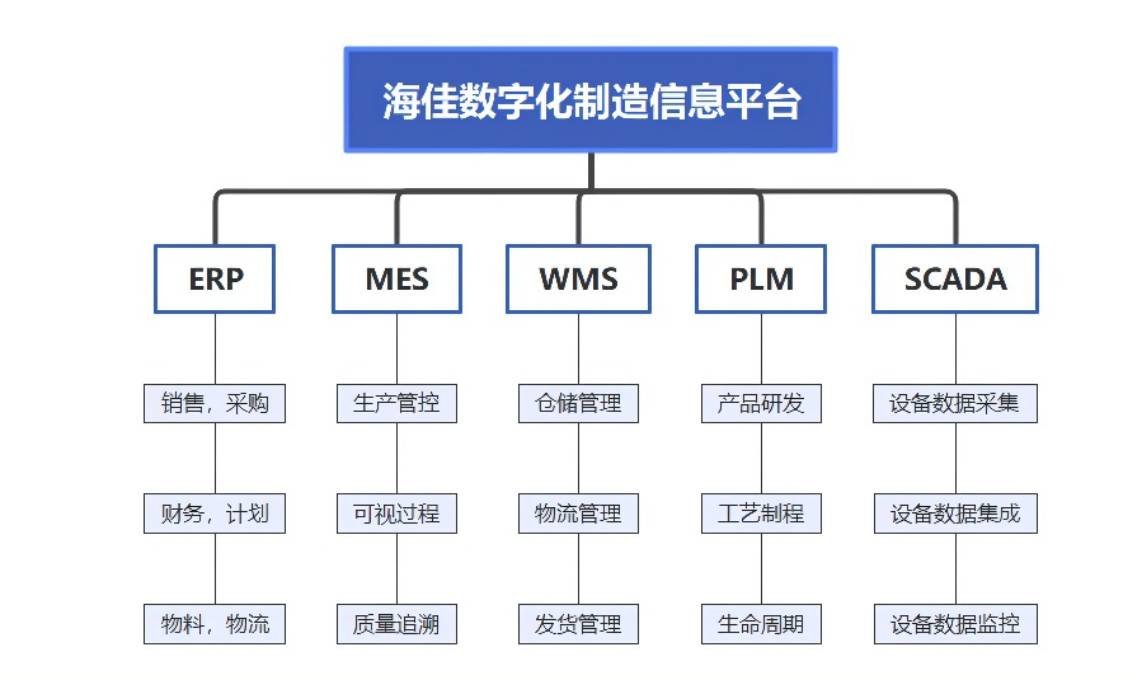 海佳以數(shù)字化生產(chǎn)流程為基礎(chǔ),制造過程集成了ERP,MES系統(tǒng),SCADA設(shè)備數(shù)據(jù)采集系統(tǒng),車間看板系統(tǒng),遠(yuǎn)程運維等信息化系統(tǒng),實現(xiàn)了從零部件采購到織造產(chǎn)品全流程的信息化管理。