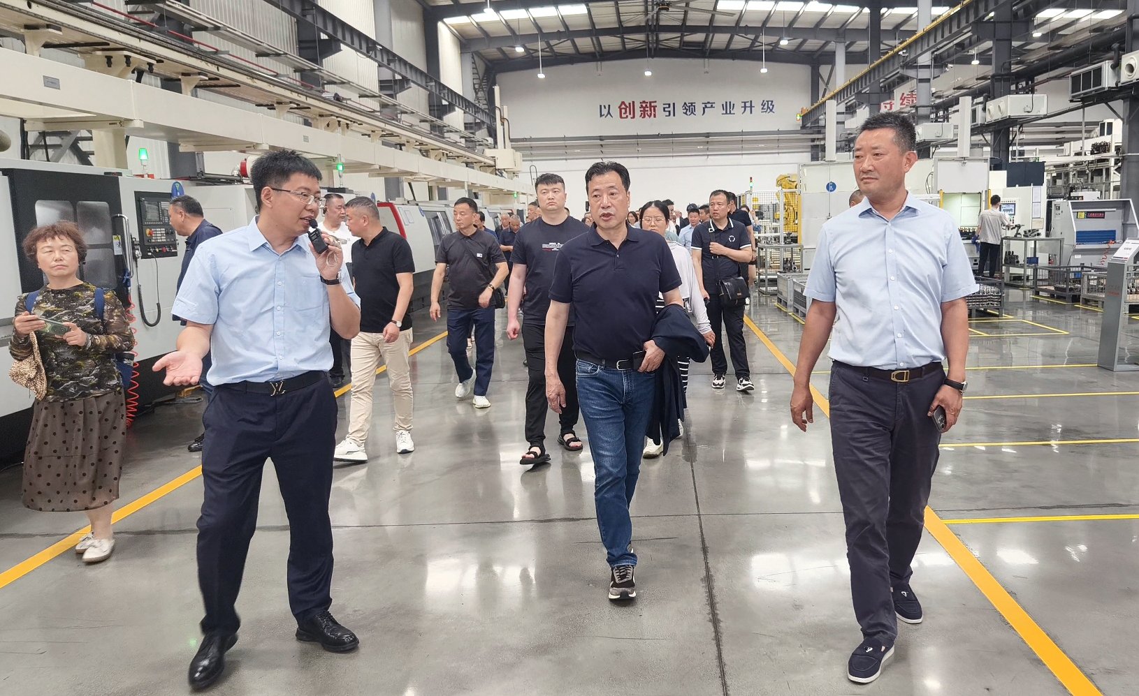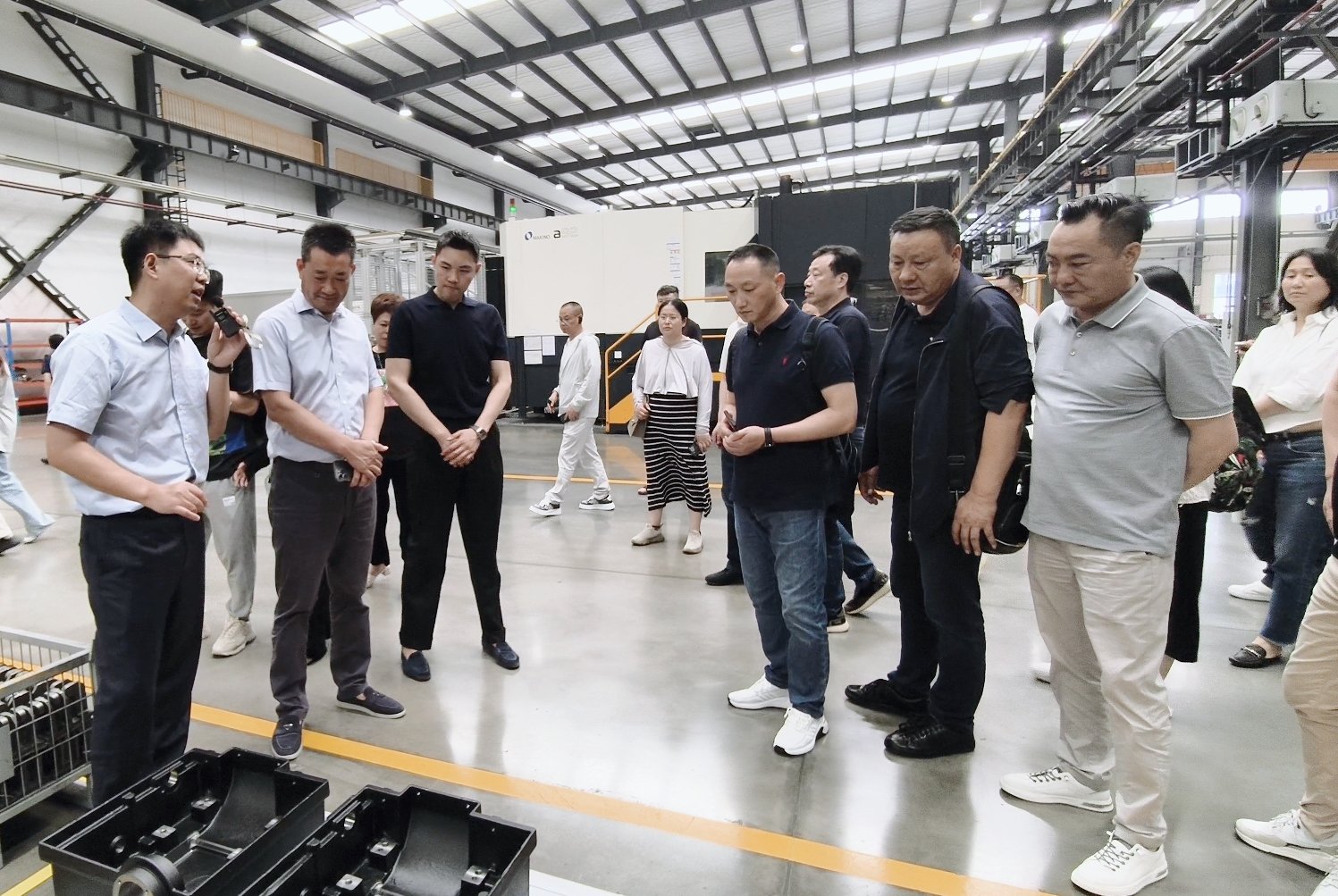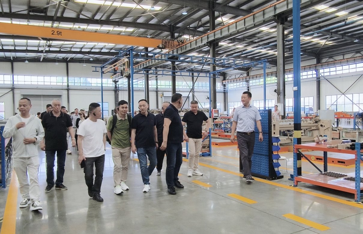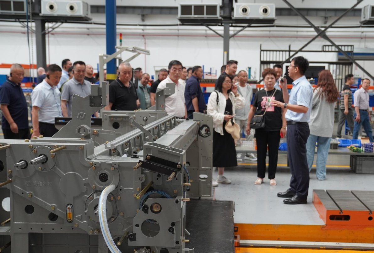 為增強織造行業(yè)上下游交流互動,促進企業(yè)合作發(fā)展,6月13日,由盛澤織造商會榮譽會長吳留生先生、會長史連明先生帶隊,商會監(jiān)事長、顧問、書記、秘書長、常務副會長、副會長、監(jiān)事及理事會員一行50余人蒞臨青島海佳機械集團參觀指導。集團董事長王安儉、總經(jīng)理劉井然、副總經(jīng)理王柏涵等領(lǐng)導與商會來賓齊聚一堂,共同參觀了海佳智能制造工廠,并舉行企業(yè)交流晚宴,共敘友誼,齊繪藍圖。