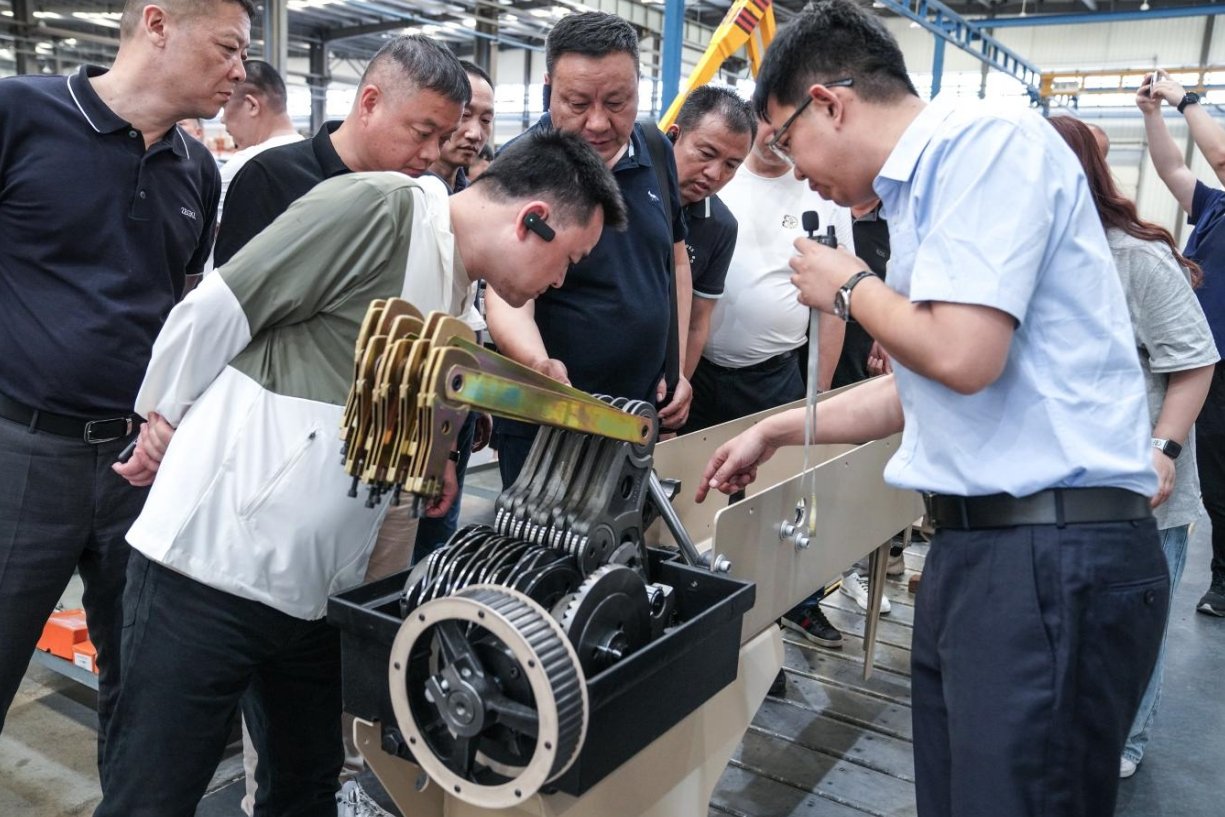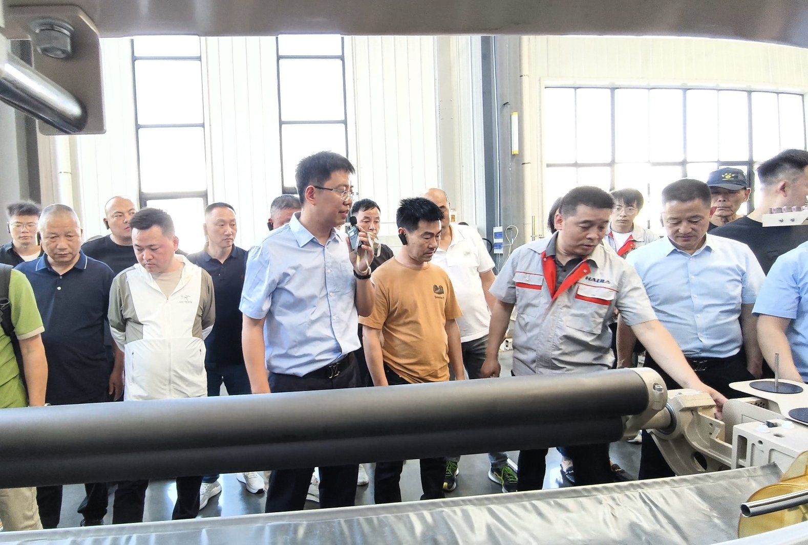 隨后,商會來賓一同前往海佳(黃山)智能工廠,共同參觀海佳年產(chǎn)1.5萬臺噴水織機與年產(chǎn)2萬臺凸輪開口智能生產(chǎn)線。在總經(jīng)理劉井然的詳細講解下,商會一行深入生產(chǎn)一線,了解海佳產(chǎn)品管控及質(zhì)量標準,對海佳精準管理和高效產(chǎn)能給予成分肯定。