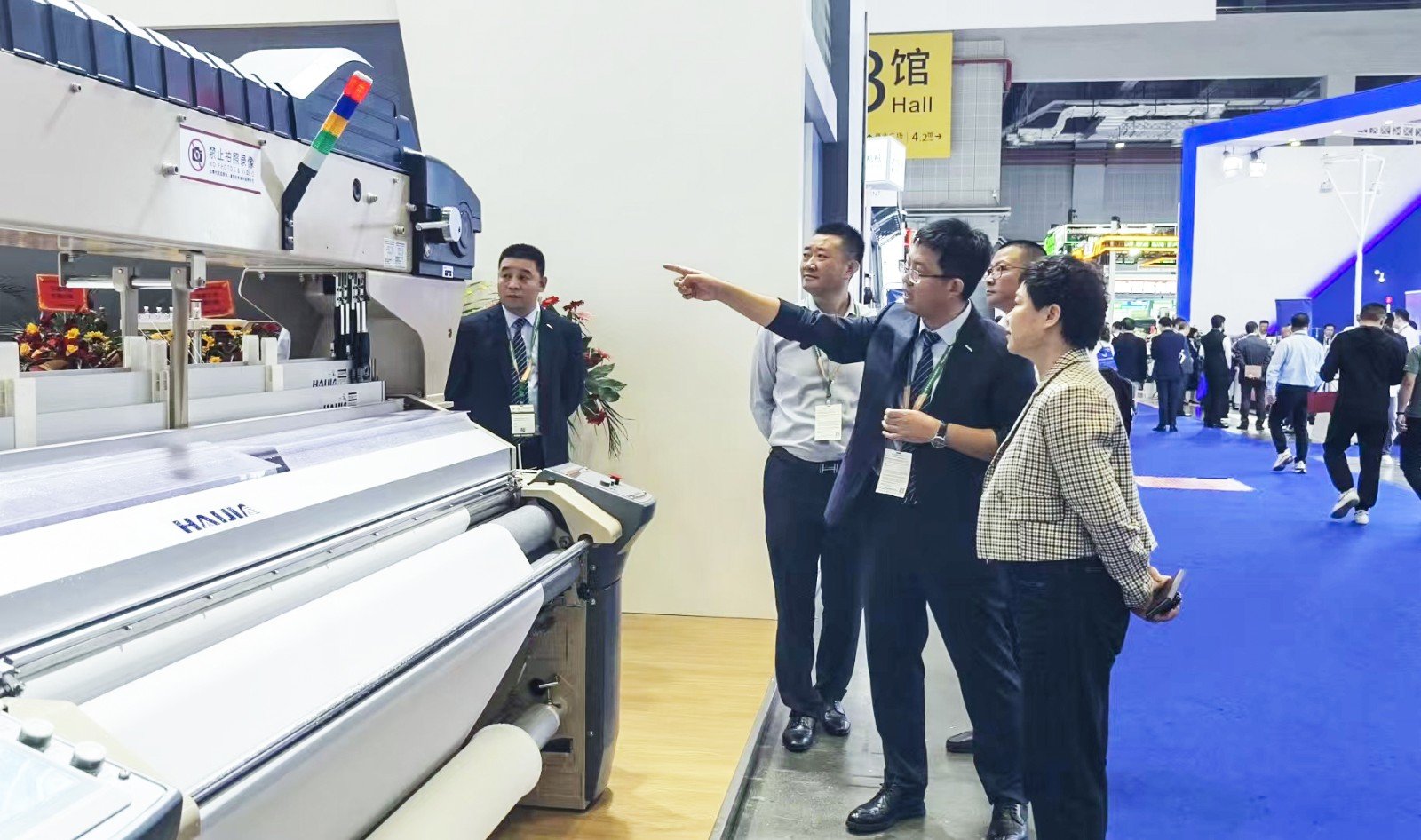 海佳噴氣織機(jī)也進(jìn)行了全面創(chuàng)新升級(jí),本次展出的HA-9030N系列噴氣織機(jī)長(zhǎng)期運(yùn)轉(zhuǎn)更加可靠性,高速運(yùn)轉(zhuǎn)同時(shí)更加節(jié)能,能滿足各種高品質(zhì)織造,品種適應(yīng)性更強(qiáng),現(xiàn)場(chǎng)吸引海內(nèi)外諸多客戶。