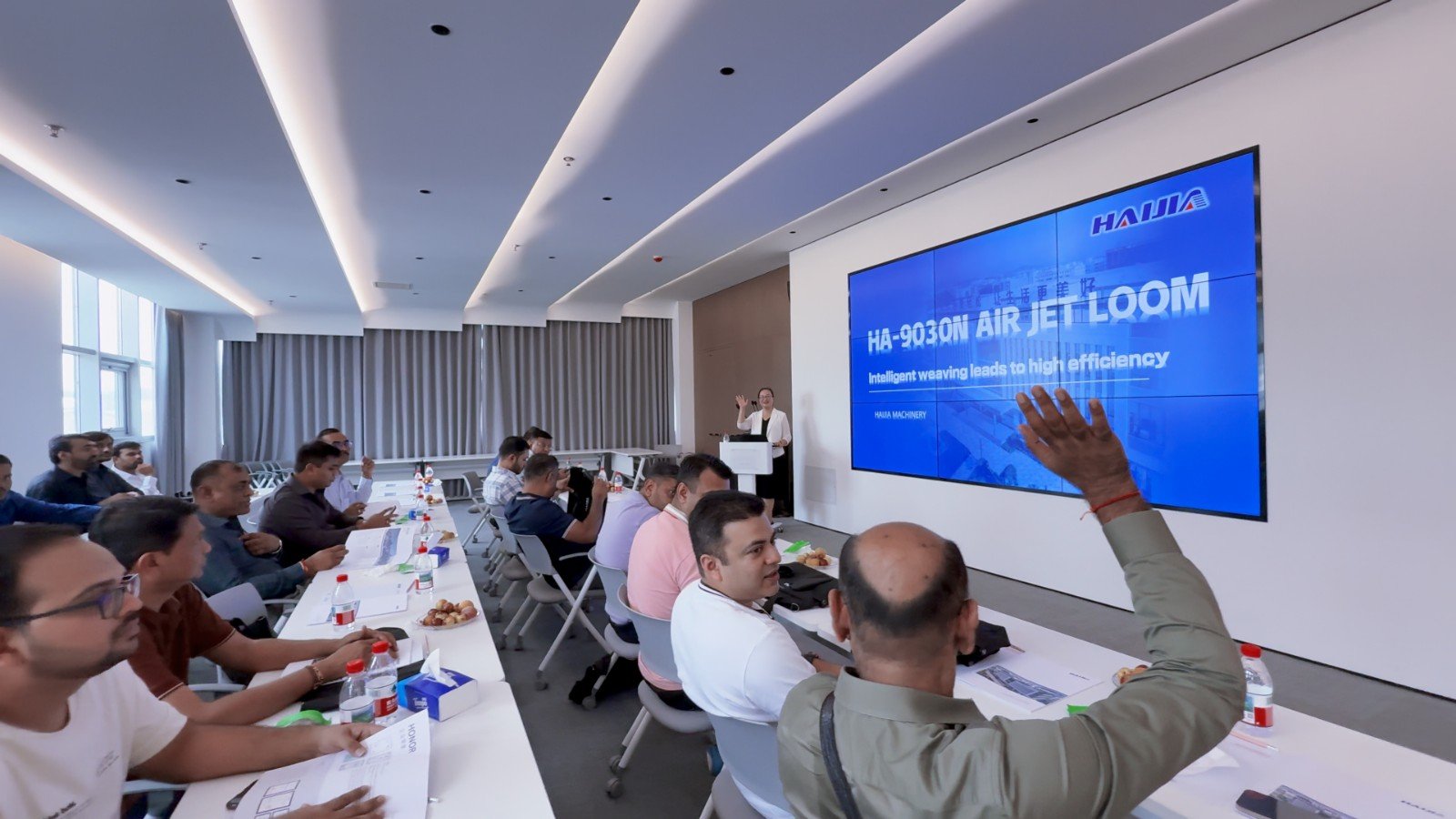 2025年8月28日,24家印度紡織企業(yè)客戶代表走進(jìn)海佳集團(tuán),開啟了一場深度的噴氣織機(jī)體驗之旅。