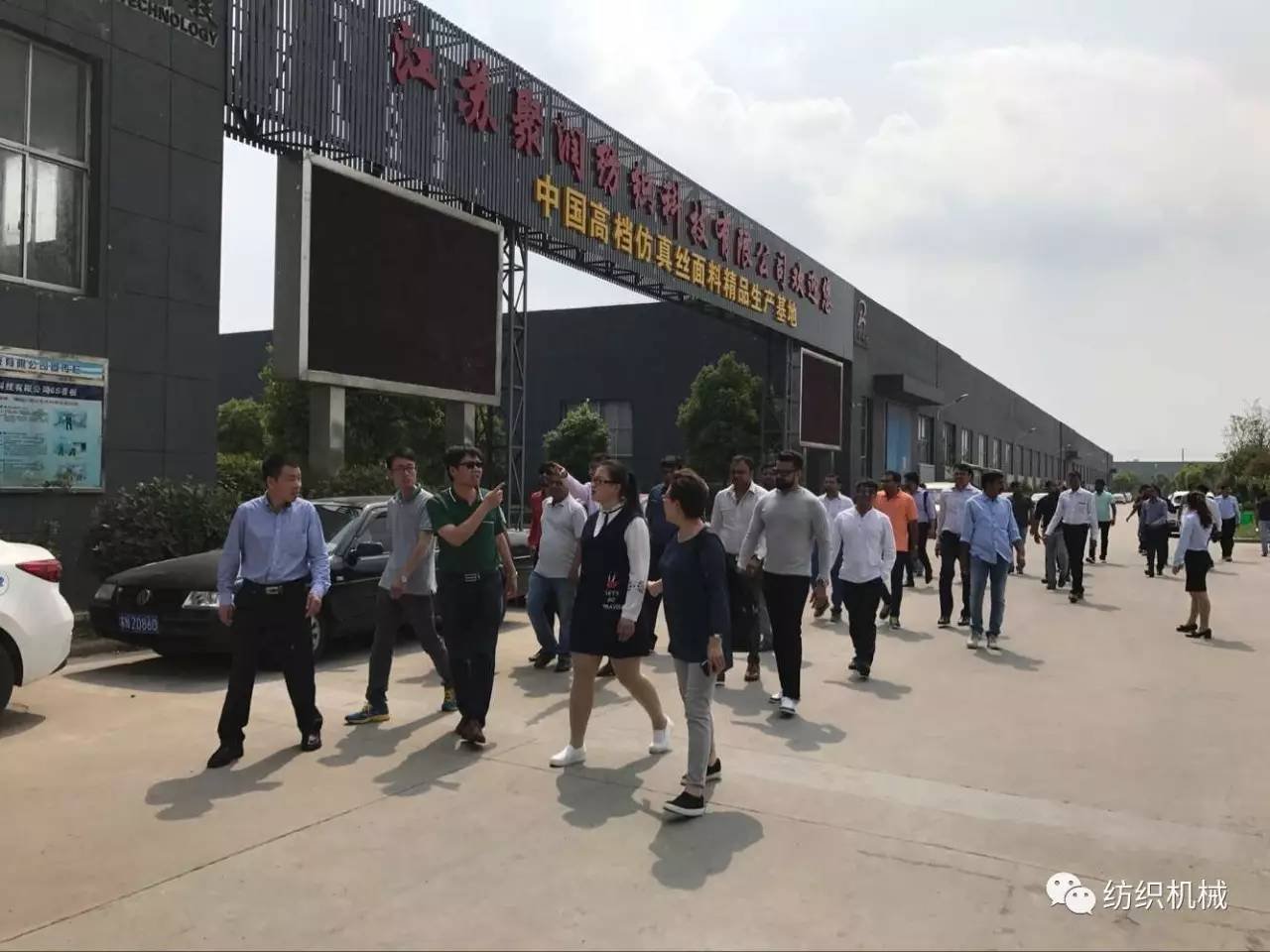 今天,來(lái)自印度的40余企業(yè)代表乘大巴從青島奔赴300多公里外的泗陽(yáng),參觀了江蘇聚潤(rùn)紡織科技有限公司。